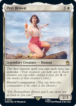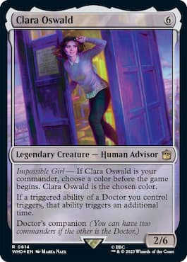 All companions within the WHO set have the mechanic Doctor’s Companion. This allows the companion to become a second commander when paired with a Doctor. The companions all have mono-color casting costs or are colorless, potentially adding a third color to your Commander deck as each of the Doctors has a dual-color casting cost.