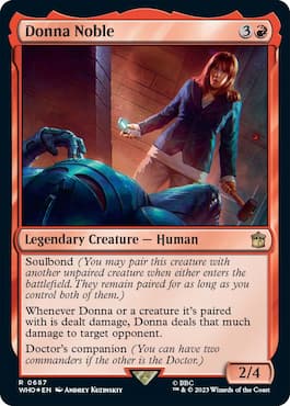 Doctors and companions work together using the Doctor’s Companion mechanic, which is a variant of Partner, allowing both the Doctor and their companion to operate as commanders from the command zone.