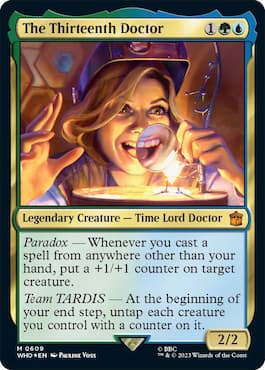 Each of the Doctors has at least one triggered ability and has a dual-color casting cost. Any Doctor can operate as a commander since it is a Legendary Creature. And Doctor is an official MTG creature type, which means it works with changelings.
