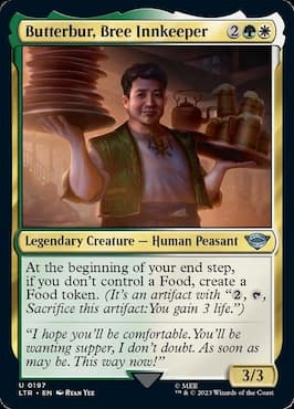 Food tokens provide a valuable life point resource in the Green and White LTR Draft archetype. The color pair also synergizes with the Ring tempts you mechanic, mana fixing, and powerful finishers.