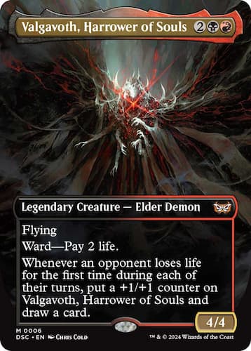 Valgavoth, Harrower of Souls isn’t the most powerful Elder Demon in MTG, but the Legendary creature is an ideal commander in a build that punishes opponents when life points are lost.