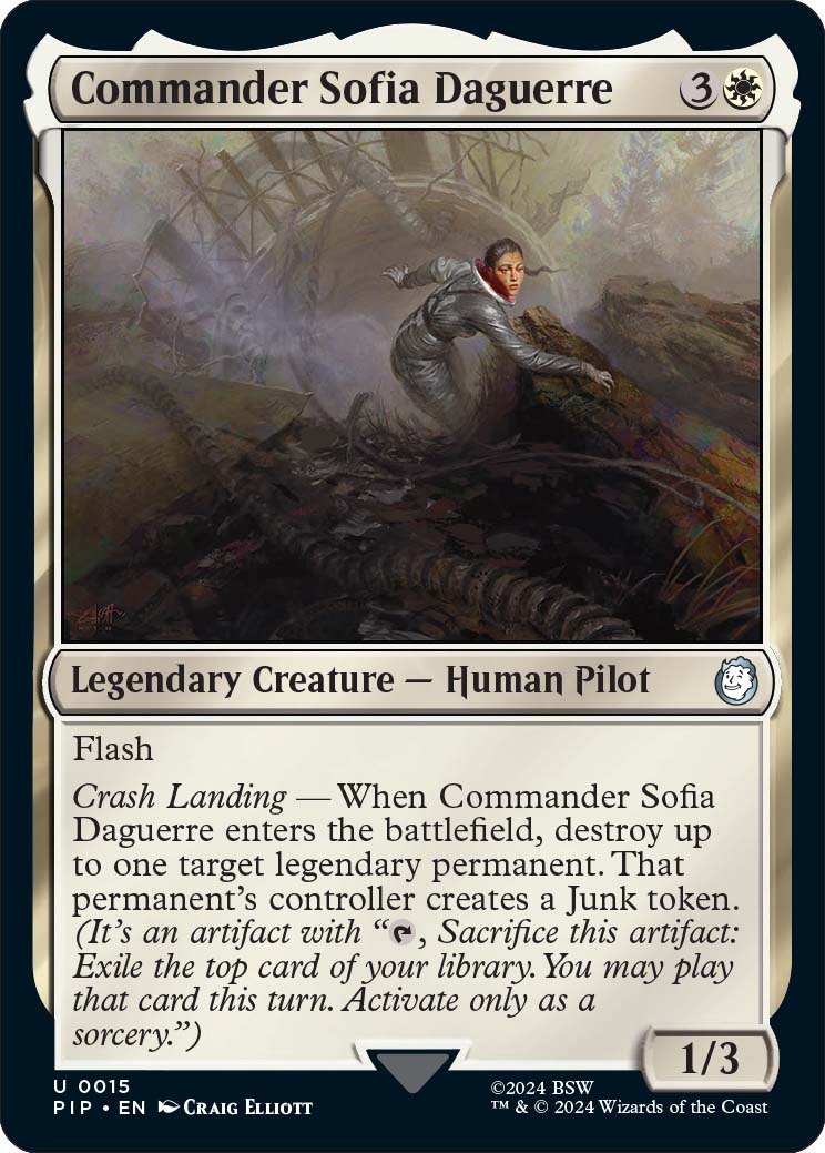 The deck features a heavy theme of Junk token creation and benefits around playing cards from exile. With the abundance of artifacts you’ll possess on the board, Puresteel Paladin is a powerful two-drop that lets you refill your hand when you play any equipment, while Commander Sofia Daguerre keeps the enemy’s board in check.
