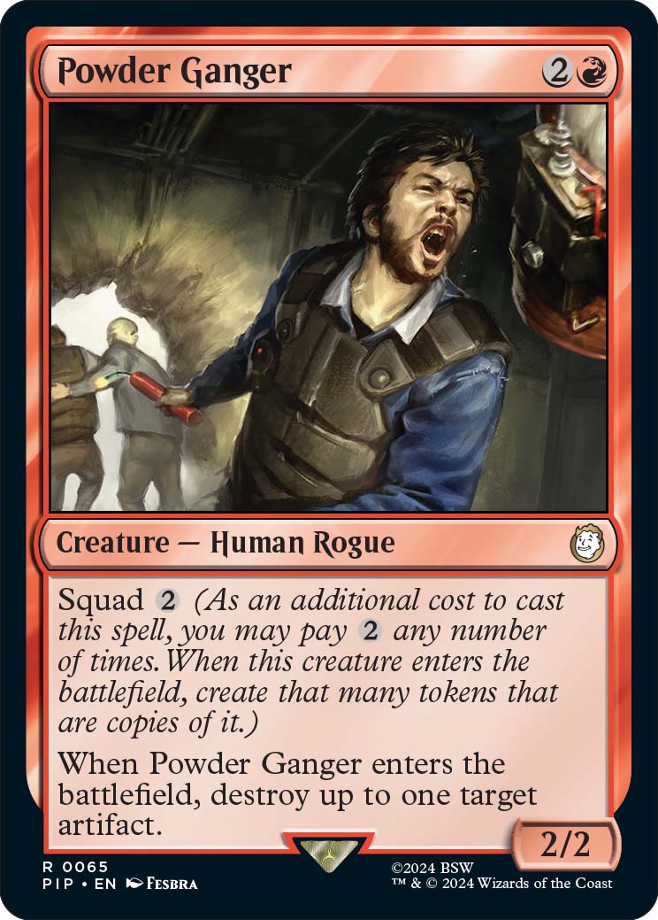 Your opponent is likely to possess many artifacts, particularly with the Fallout set, so slinging out multiple copies of Powder Ganger keeps their artifact count in check whilst ensuring your go-wide strategy sticks.