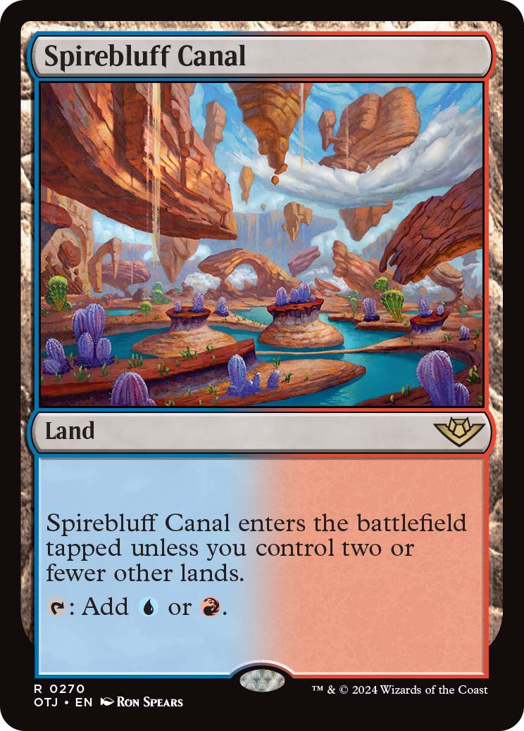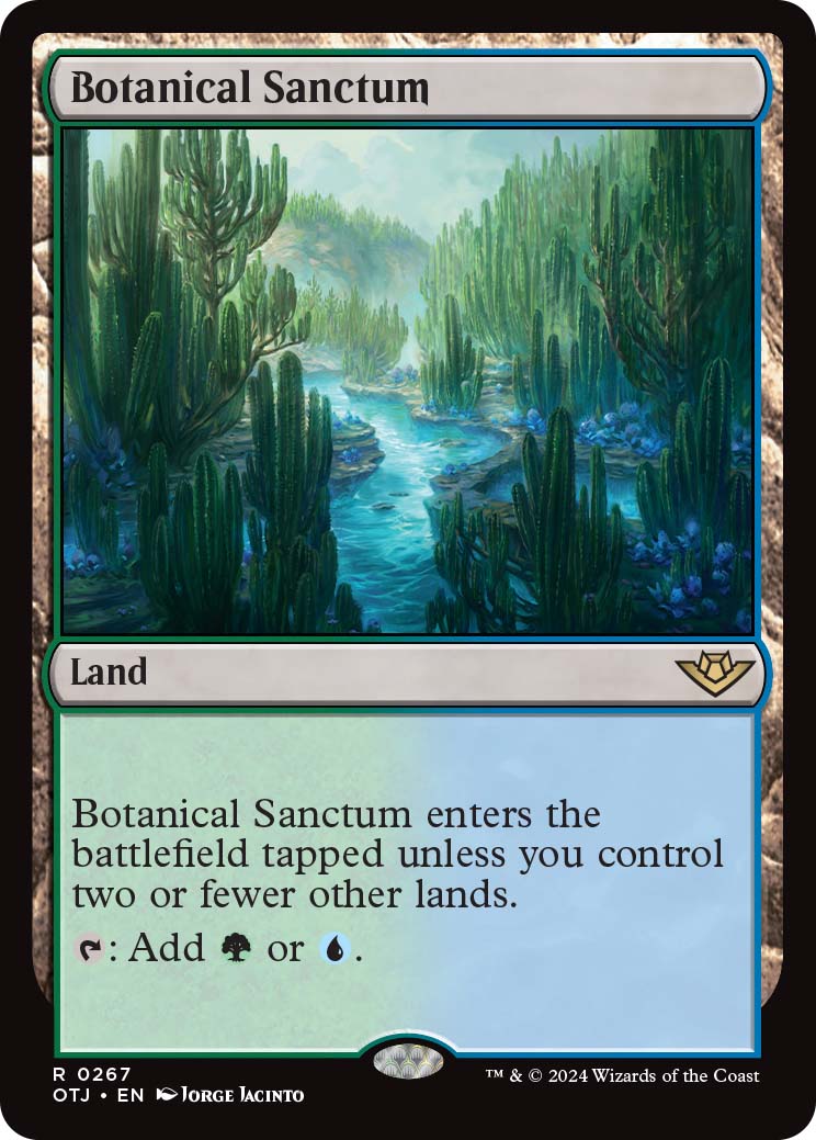 Fast lands are returning to Standard MTG through the OTJ set, but only the enemy colors are getting printed. Fast lands enter the battlefield tapped unless you control two or fewer other lands. The enemy Fast lands in OTJ are Blooming Marsh (BG), Botanical Sandctum (GU) Concealed Courtyard (WB), Inspiring Vantage (RW), and Spirebluff Canal (UR).