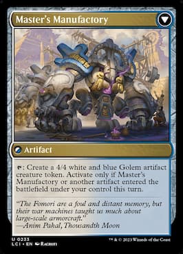 The UW LCI Draft archetype has an Artifact theme in conjunction with the new Craft mechanic through the signpost double-face card Master’s Guide-Mural//Master’s Manufactory. It’s a Control-based archetype relying upon Lifelink and removal to dominate during the late-game stage of a match.
