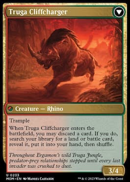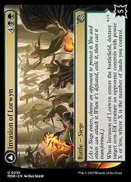 The Red and Green Uncommon signpost Rampaging Geoderm supports having Battles in a player’s deck, granting +1/+1 counters to creatures that attack a Battle. But the color isn’t just about Battles as it’s a Midrange stompy build that has access to card advantage and ramp.