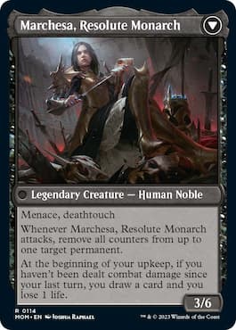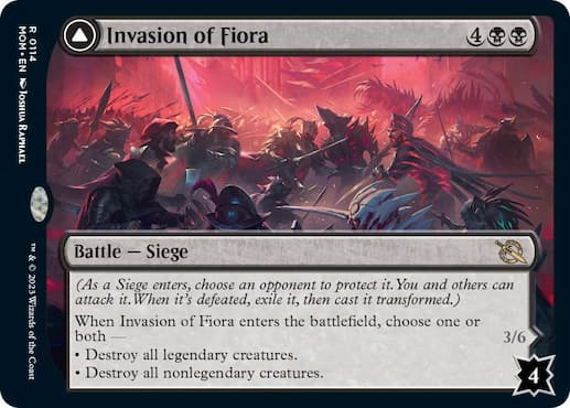 All Battle cards in MOM have some form of an enters-the-battlefield effect on the front side. Defeat the Battle card’s Defense Loyalty counter and the Battle card triggers a leave the battlefield effect that exiles the card. The controller then casts the backside of the Battle card from exile without having to pay a casting cost.