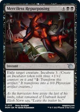 The final new mechanic in the MOM set is Incubate, giving players the feel of Phyrexians hatching out of portals as they attack the planes of the MTG Multiverse. Incubate is found on a variety of card types while always having an Incubate number.