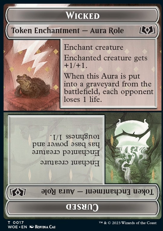 - Wicked Role: Enchanted creature gets +1/+1. When this Aura is put into a graveyard from the battlefield, each opponent loses one life.