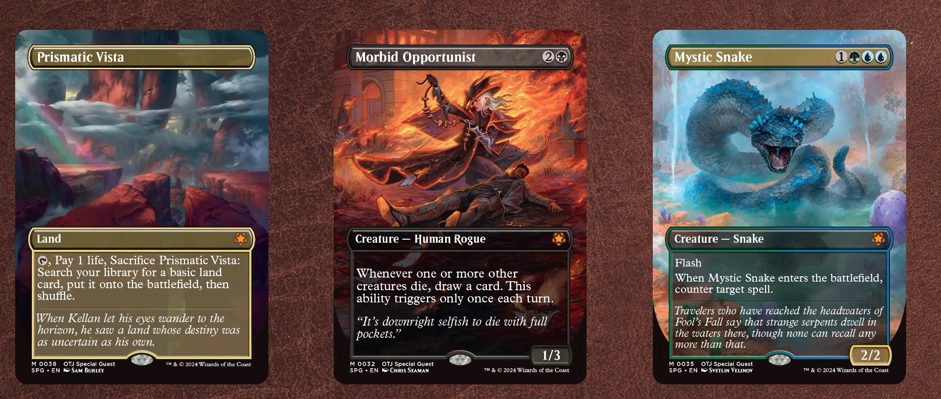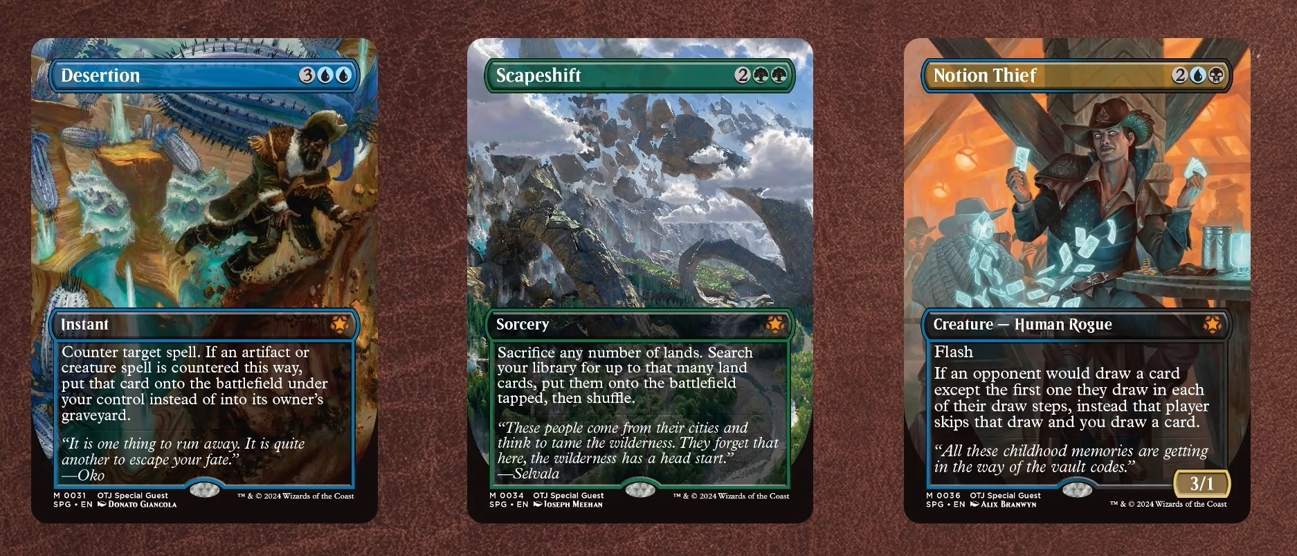 WotC has included only 10 Special Guest cards in OTJ in that they share a slot on The List with BIG cards. All Special Guest cards are MTG reprints with similar themes seen in OTJ and are found in both Play and Collector booster packs.