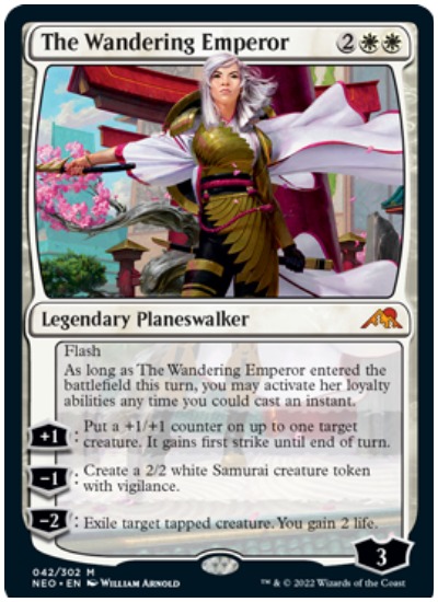 Slotting into Mono-White Aggro builds as well as Azorius Control decks, The Wandering Emperor has left her mark on the MTG Alchemy meta. She sets herself apart from other NEO planeswalkers in that she has Flash, along with three planeswalker abilities that support a variety of Magic archetypes.