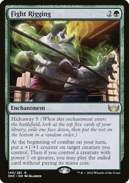 The Ancient One is a towering 8/8 Spirit God for only two mana. Sure, it can’t attack or block right away, but nonetheless it’s a giant creature you can cast as soon as turn two. On top of this, you can time it perfectly with a special card from Streets of New Capenna, Fight Rigging. This green enchantment activates Hideaway 5 when it enters the battlefield.