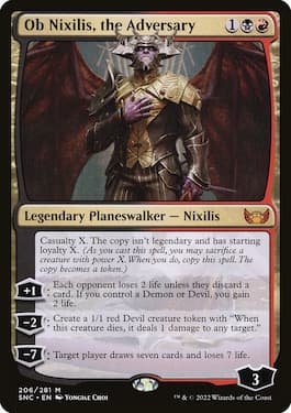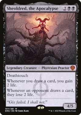 This allows you to activate the Planeswalker’s ultimate ability immediately. If you’re lucky enough to draw into Sheoldred, The Apocalypse and cast her on turn four, this delightful synergy then turns into a deadly game-finishing combo that deals 21 direct damage to an opponent. By targeting the opponent player instead of yourself for Ob Nixilis’ ultimate, you force them to draw seven cards and lose seven life. Sheoldred deals the finishing blow by dealing the additional 14 damage, two for each card the opponent draws. Check out the following video to see the combo in action.