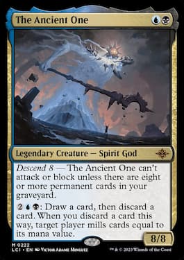The Ancient One, a standout card from Lost Caverns of Ixalan, adds an exciting twist to Standard. The Spirit God enables unique synergies and even game-finishing combos, giving players the chance to get truly creative with their deck building.