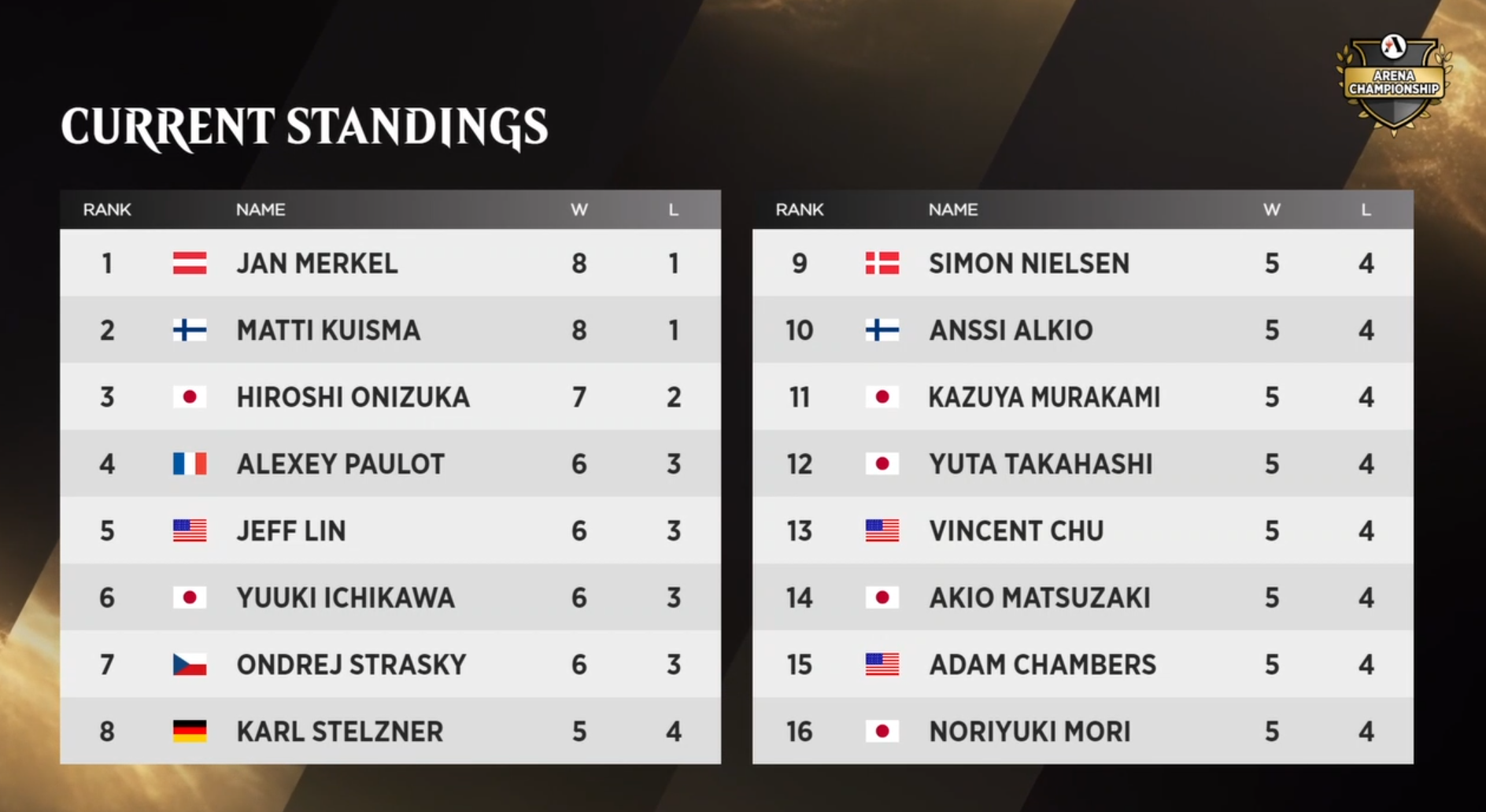 Matti Kuisma was the only MTG player to start day two of the Arena Championship undefeated, followed by Merkel and Nielsen at 5-1 on the Mardu Reanimator deck.