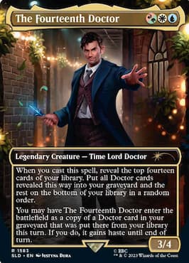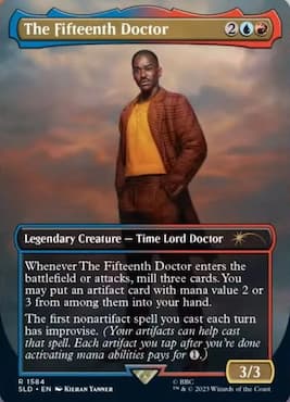 The Fifteenth Doctor uses the MTG Improvise mechanic. Improvise allows players to use Artifacts to help cast spells, paying one colorless mana per tapped Artifact. And The Fifteenth Doctor helps players find those Artifacts each time the Time Lord attacks or enters the battlefield.