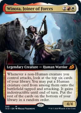 Banned in Duel Commander and the digital Historic format, Winota, Joiner of Forces is a powerful Naya legendary creature. The legendary human warrior getting banned didn’t stop players from including Winota, Joiner of Forces in a variety of Commander decks, though. Most versions of the legendary in Red and White are $10 and under, except for two variants.
