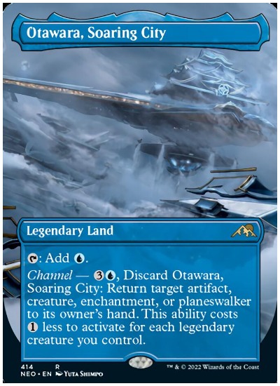 Otawara, Soaring City is a popular Rare legendary land with the MTG mechanic Channel in the Modern, Pioneer, and Standard formats. Boseiju, Who Endures, and Otawara, Soaring City are the two most popular lands from the NEO cycle.