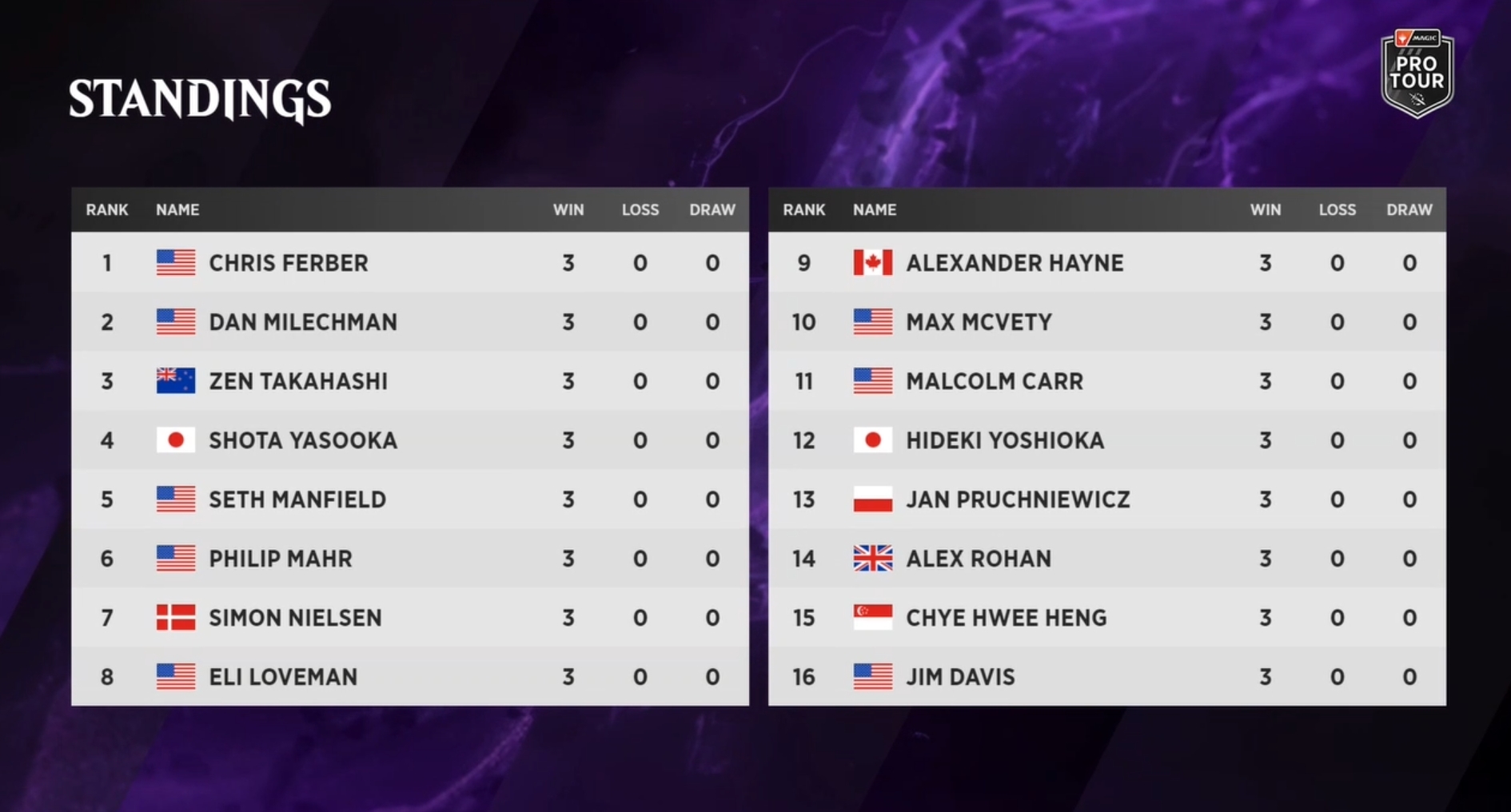 After three rounds of MOM Draft, 29 players had 3-0 records heading into the Standard Constructed Swiss rounds.
