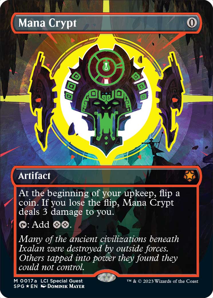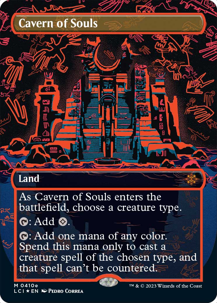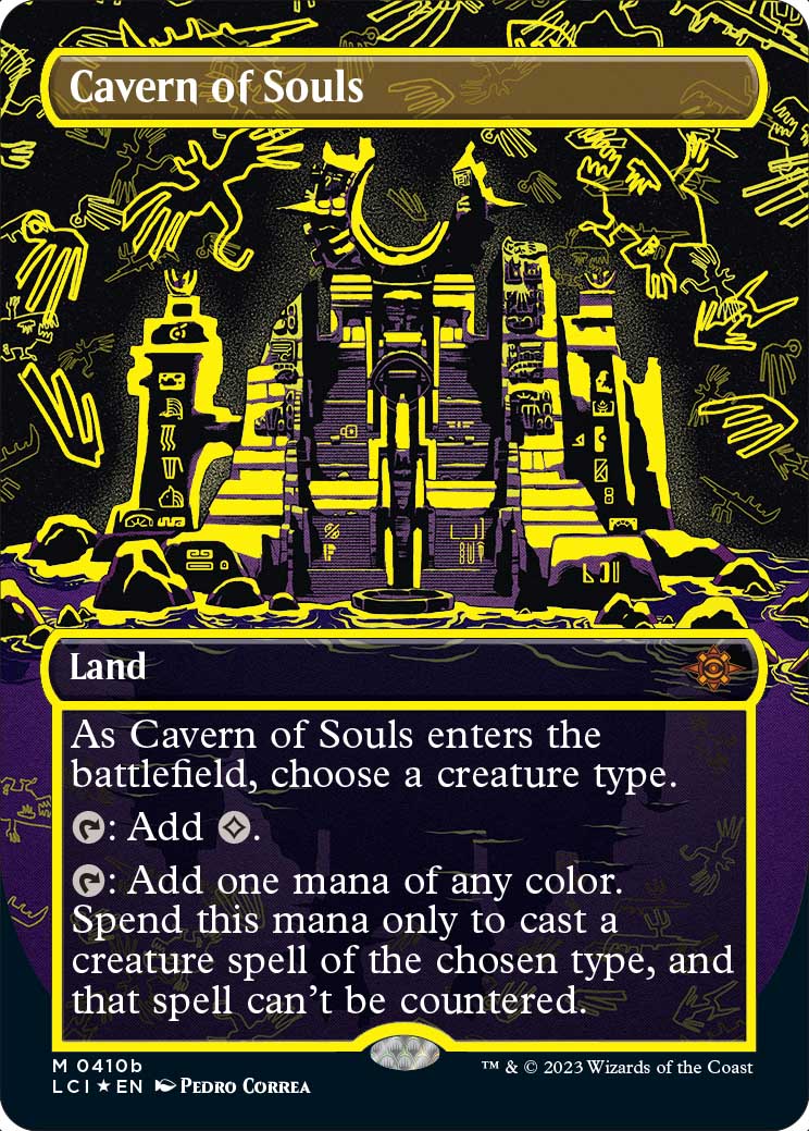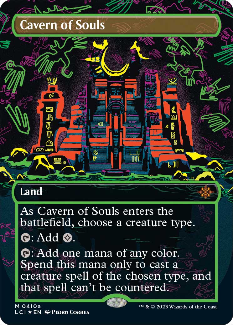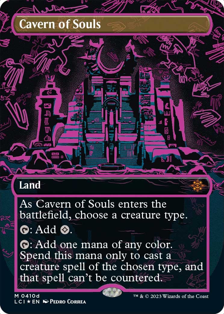 Featured during the MagicCon Vegas panel were reprints of Cavern of Soul and Mana Crypt. Both had neon treatments that showcased seven color variants.