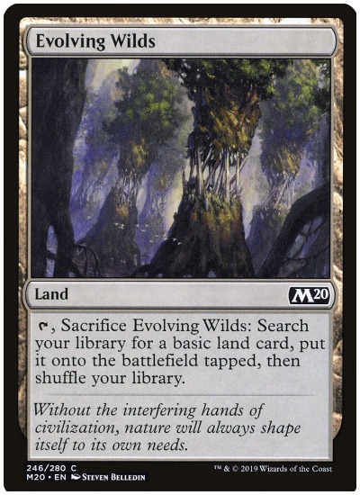 Unlike Prismatic Vista, Evolving Wilds has no additional cost and can be freely played. One big downside is that the land will come tapped and you need to wait one turn before you play it.