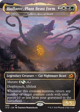 Biollante is a five-mana Legendary creature that requires three different lands to summon. It has two strong effects in Deathtouch and Lifelink, allowing you to kill any creature it encounters alongside healing you back a portion of your health. If you mutate him, you can return a lot of units to the battlefield from the graveyard, allowing you to overwhelm your opponent and score an easy win.