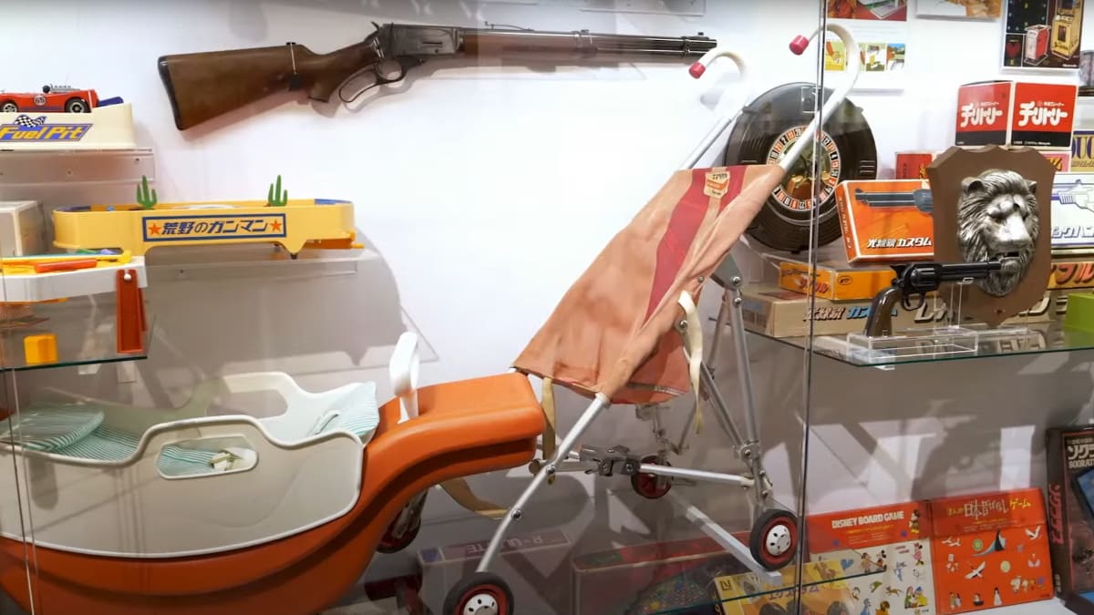 This history is showcased throughout the second story, where guests can walk through various displays showcasing past products. These include old gaming systems like the NES as well as board games, a copy machine, and even a toy rifle perched above a baby stroller.