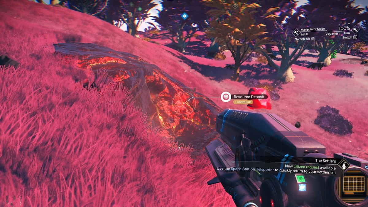 - Once you have found a planet with Cadmium, fly down and land wherever you want.