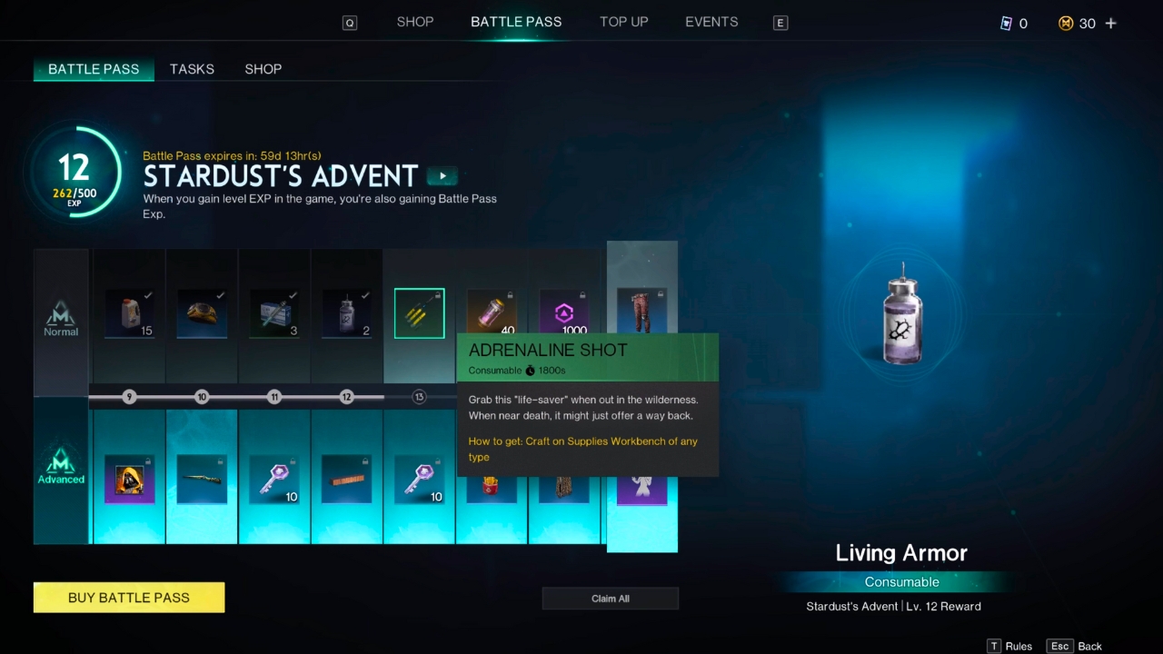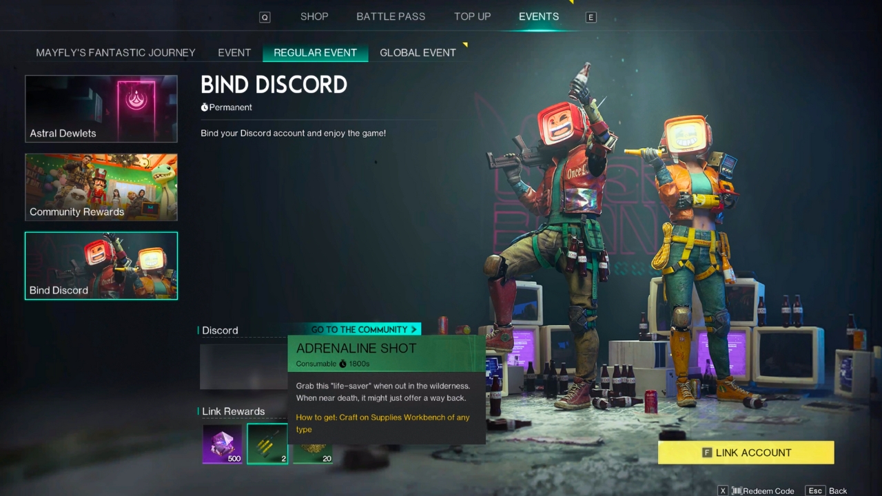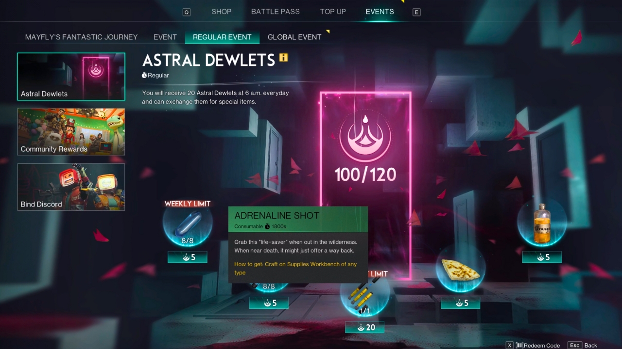 There are five ways to get Adrenaline Shots in Once Human, including looting them from med or first aid kits, collecting them as rewards in the Battle Pass, exchanging Astral Dewlets for one per week, by binding your Discord to Once Human (one-off), or by making them at the Supplies Workbench.