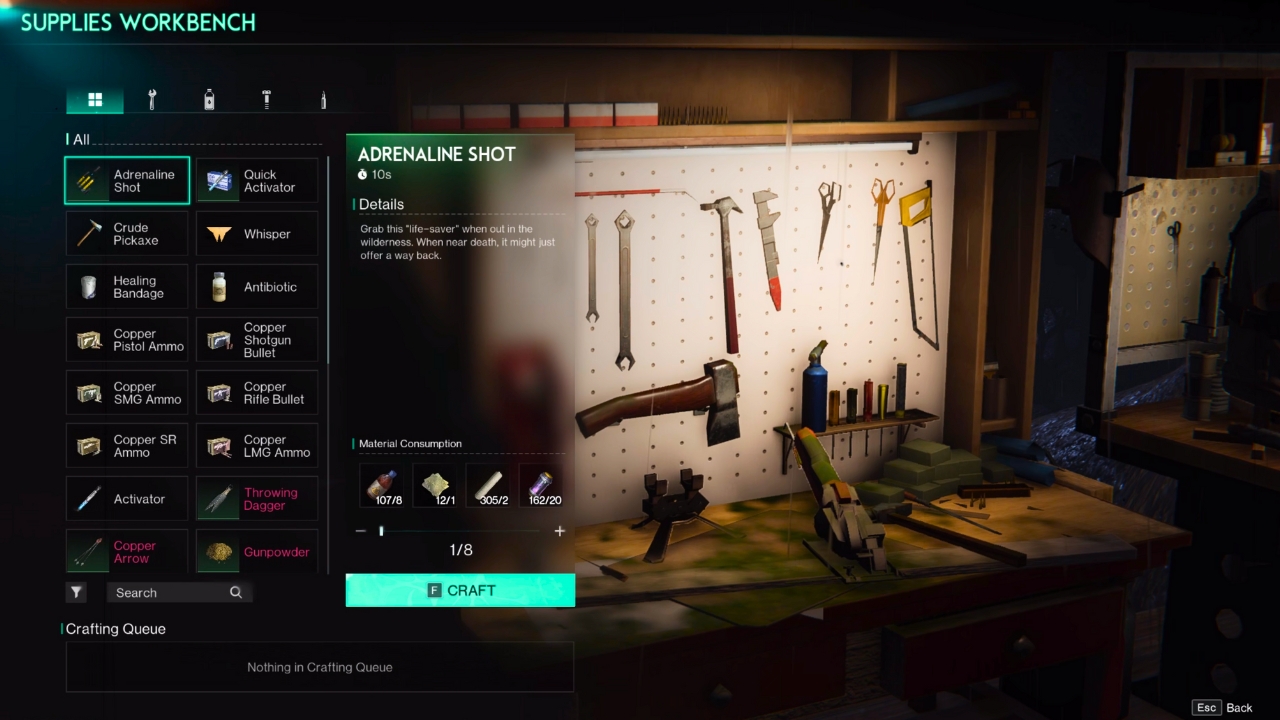 Once you have your Supplies Workbench and unlocked the formula, you can start making Adrenaline Shots. Collect the ingredients in the following locations: