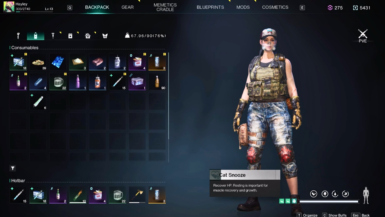 Besides its cuteness, the best benefit of the Extradimensional Cat is that when you sleep, you gain a buff called Cat Snooze, which helps you recover your health faster.