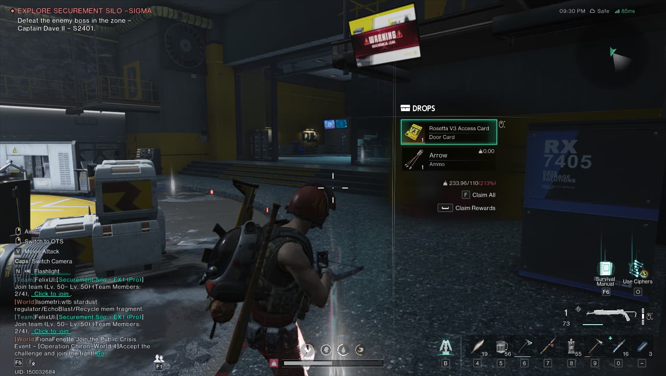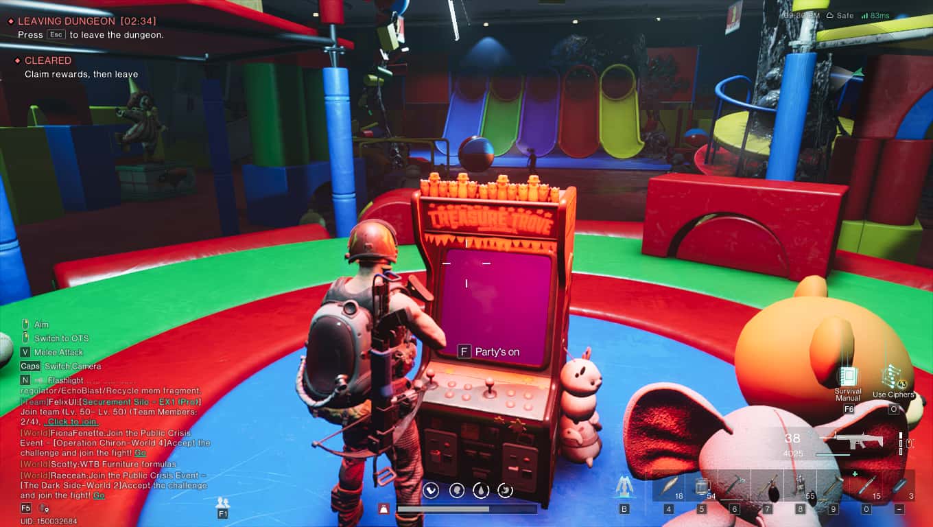 Once you have the card, proceed with the dungeon and you should quickly spot a vent with a red color on your left. Crouch to fit in the space and use a ladder to go up and fight three more enemies in the room. After defeating them, turn right and you’ll find a locked door that requires a keycard. Use your Rosetta V3 Access Card here. That will open the door, leading you to a huge kid’s playing room filled with toys. Once inside, use the Wish Machine; this triggers waves of enemies. You have to stay on the platform for 100 seconds and after you survive 90 seconds, you’ll see a boss spawn.
