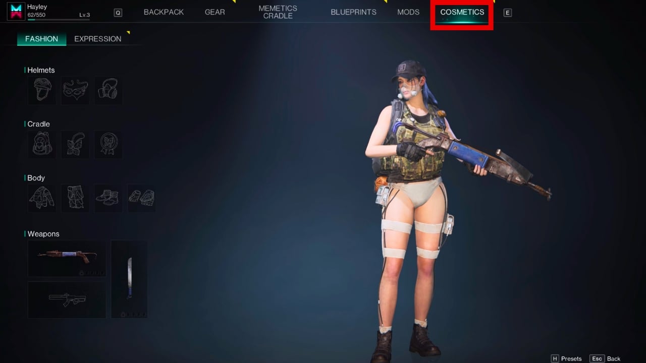 - Navigate to the Cosmetics tab.