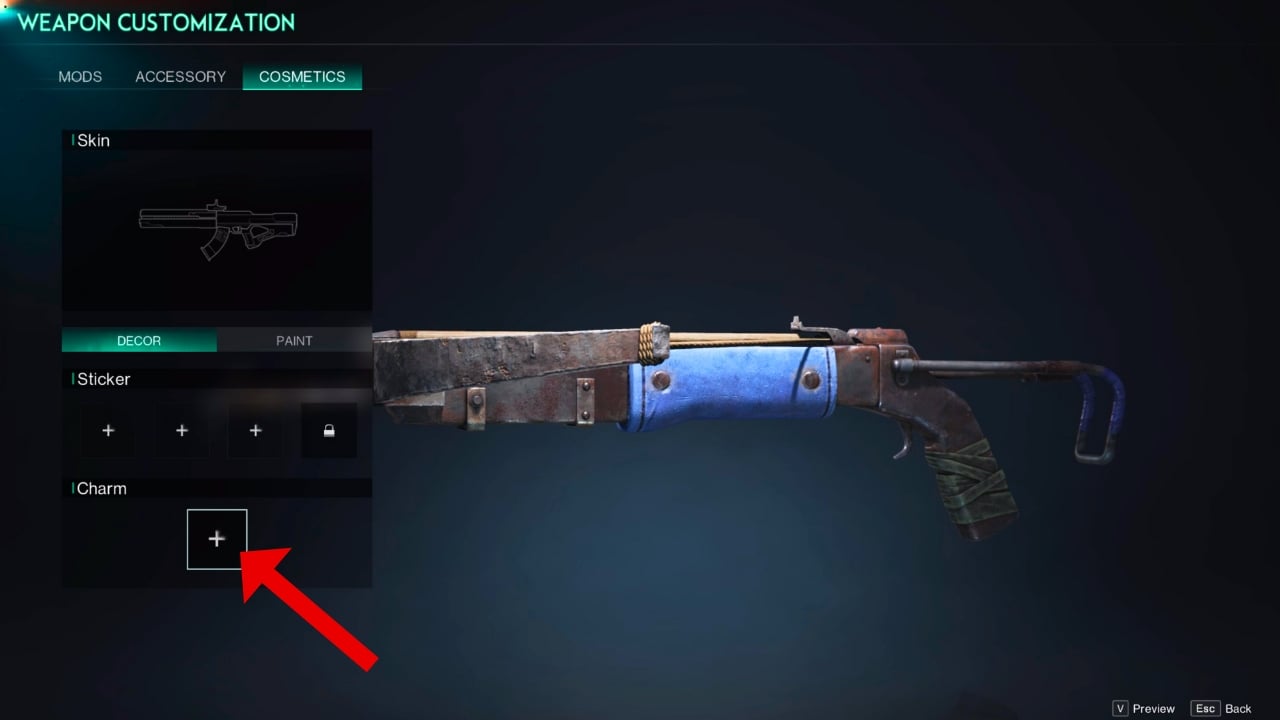 - Under the Cosmetics sections in Weapon Customization, select the empty charm box.