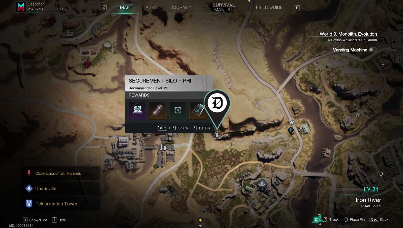 - Securement Silo Phi: While clearing the dungeon, you should meet the Rainfall Reaper when you enter the seepage area. (Coordinates: 5149, -2977)