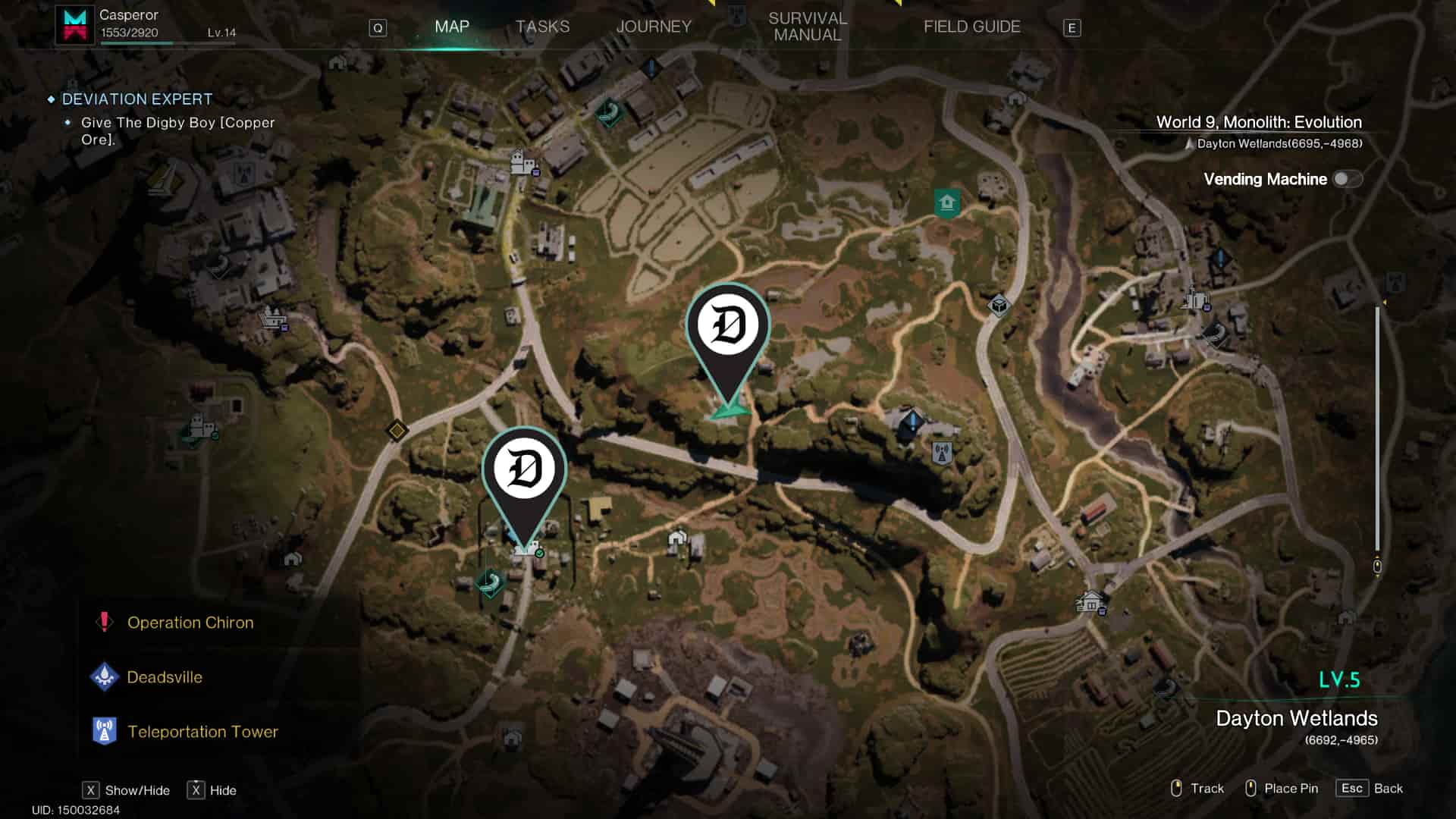 The Underground Bunker’s location is briefly teased by the description of the Bunker Access Card, which mentions Aiden. That’s where you need to head next in the Dayton Westland region, east of the Throughville town near Aiden’s Hideout area, roughly at coordinates: (6692, -4959).