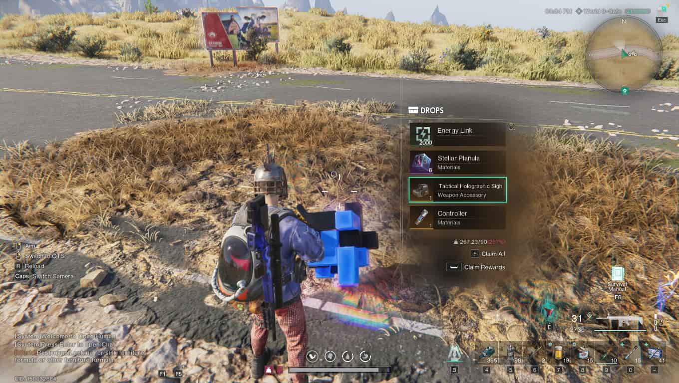 To find the Legendary Tactical Holographic Sight in Once Human, you will have to head to the far north of the map and reach the Blackheart region. After that, find the first road from the top of the map and park your vehicle at coordinates 6789, 1866. You can teleport to the nearest teleporter using Energy Links and reach the spot easily.