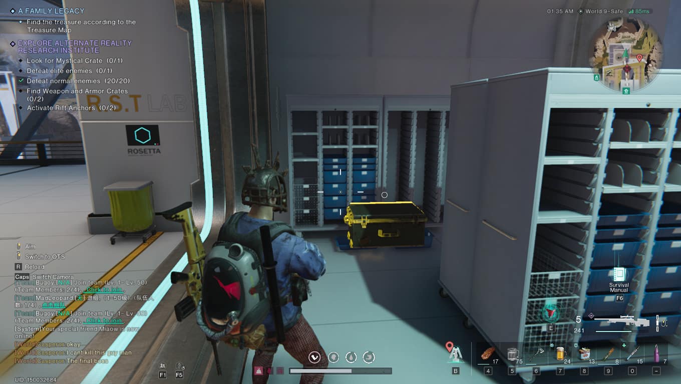 To find the Rosetta Safe crate, make your way to the Alternative Reality Research Centre located at coordinates 6931,-1660 with max-level enemies. We’d heavily recommend you use high-level gear and weapons or you’ll end up spending your Adrenaline shots trying to revive yourself after every encounter.