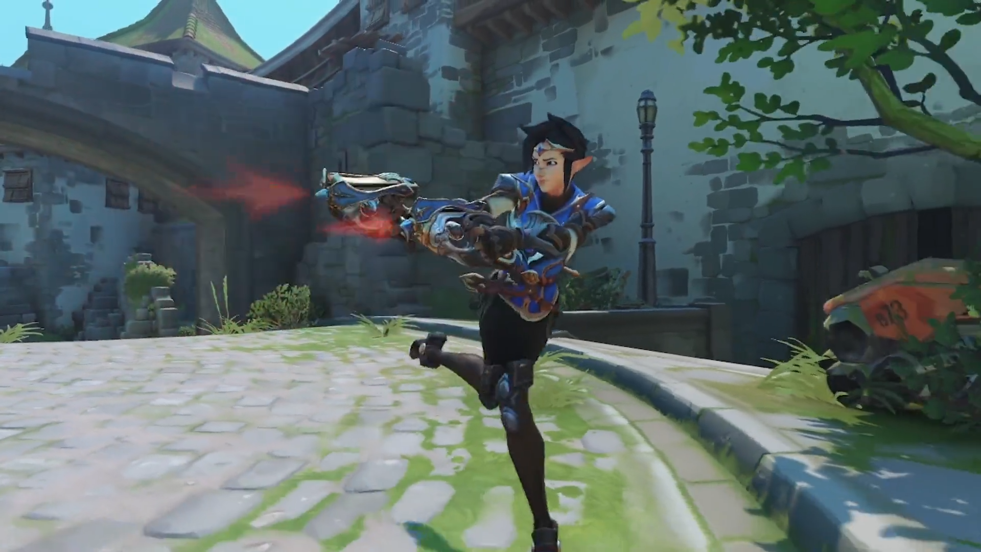 After re-watching the 27-second video that Blizzard posted to Twitter a few times, I was able to deduce what most of the options will likely be for Tracer’s Adventurer skin. The four categories will be color, weapon, headpiece, and armor, which is relatively consistent with how Blizzard has done Mythic skins in the past.