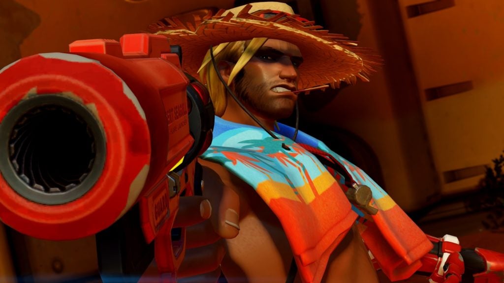 This ridiculous Summer Games skin is great for a laugh. From the top of his straw hat to the bottom of his cowboy boots-turned-flip flops, Lifeguard Cassidy is ready for the pool. This skin truly changes everything about the hero: when he activates his ultimate, a beach ball floats onto the battlefield instead of his usual tumbleweed. His belt even reads SAMF—we’ll let you figure out what that stands for.