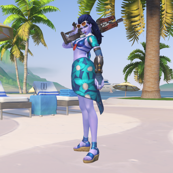 If cold weather isn’t for you, this Summer Games event look might be more your style. Cote D’Azur perfectly encapsulates the beach, from Widowmaker’s bikini top and beach skirt to her trendy cat-eye sunglasses and wedge sandals. While it’s not one of her more complex or detailed skins, like Biathlon, its beauty is in its understated nature. Even when the weather is colder, Cote D’Azur will keep your enemies’ eyes on you.