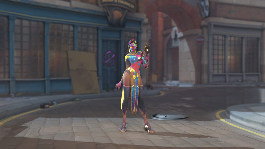 The first skin available in the Archives weekly challenge is Holi Symmetra. This colorful skin celebrates the Festival of Colors, also known as Holi, a Hindu celebration that revolves around colored powders and cheerful parades. Netting nine wins before March 19 will grant players this skin, which shows the normally-stoic Symmetra covered in bright colors.
