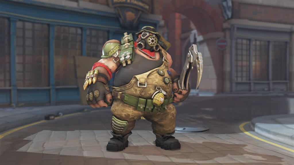 This time, Roadhog means business. The one-man apocalypse gets a full military-style makeover with his newest Legendary skin. It strays a bit from standard issue, with a large grenade attached to his hip and half the outfit falling off, but it fits Roadhog’s personality. We’re not sure what those bullets are for on his hand, but we don’t want to find out.