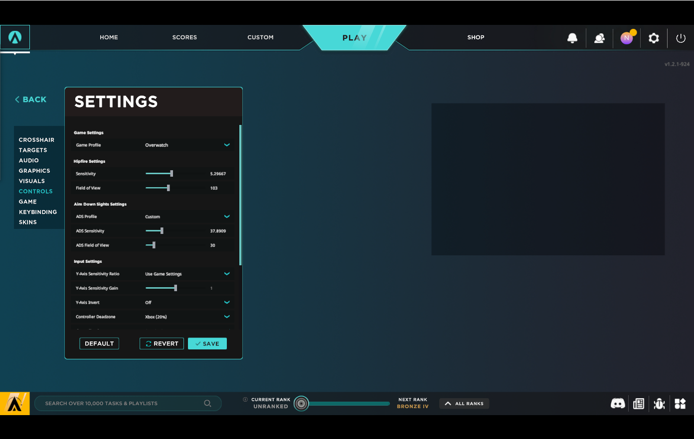 Get your Aim Labs sensitivity by heading to the cog up in the top right-hand corner of your screen. Once you’re there click on it, and head to Controls. Then change your Game Profile to Overwatch. Next to Hipfire Sensitivity, you’ll see the random Overwatch sensitivity Aim Labs has given you.