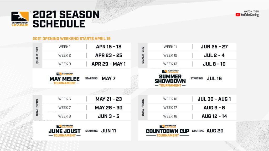 The Overwatch League announced today that its fourth season will begin on April 16. Additionally, the league revealed tons of information about the upcoming 2021 season, including standardized broadcast times, three-day game weekends, and competitive online play featuring global tournament brackets.