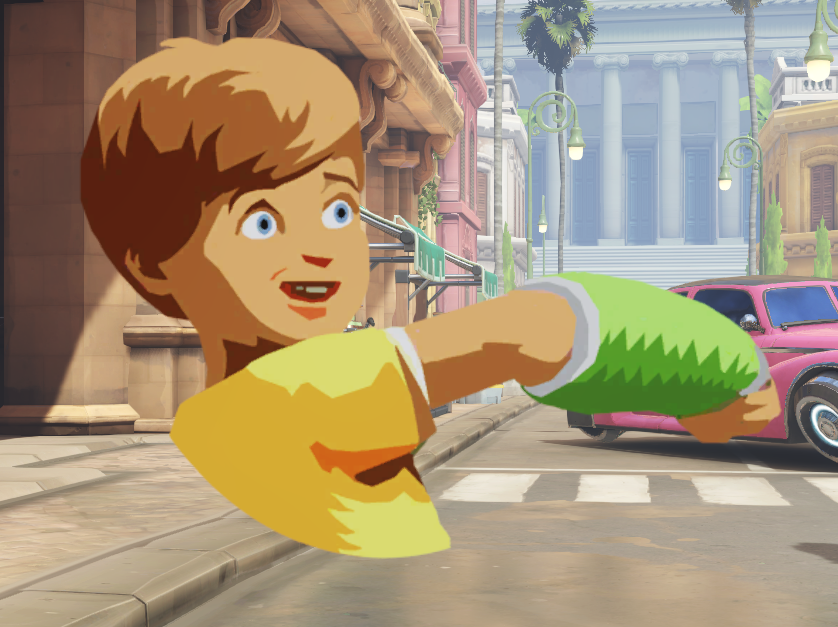 Many of Overwatch‘s sprays give us insight into what its heroes were like in their early lives. This adorable Brigitte spray is funny mostly for the juxtaposition between her inspired expression and the very fed-up look on her cat’s face, both of which never fail to make your teammates laugh.