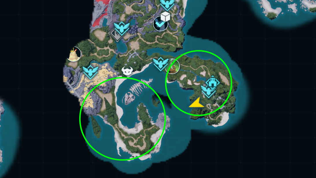 The Plateau of Beginnings itself is also a fine place to put your base, with a plethora of beginner Pals to capture and resources to gather. The valley between that peninsula and the Small Settlement fast travel point is also ideal, given how tough it is for raiders to reach you. And you can’t beat that ocean view.