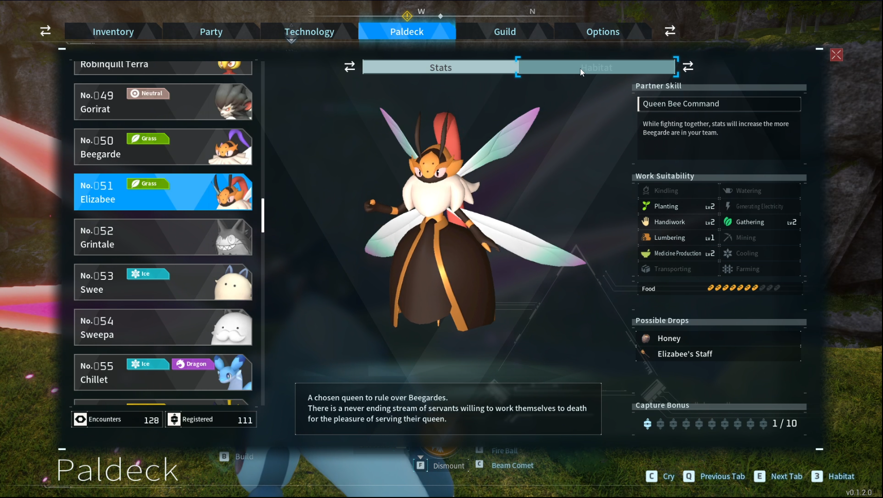 This makes Elizabee a brilliant option when tackling strong Ground-Element Pals like Menasting and Anubis, which are two of the toughest Alpha Pals you will encounter. While not in combat, get Elizabee working at your base to help with Handiwork, Planting, Gathering, and Medicine Production.