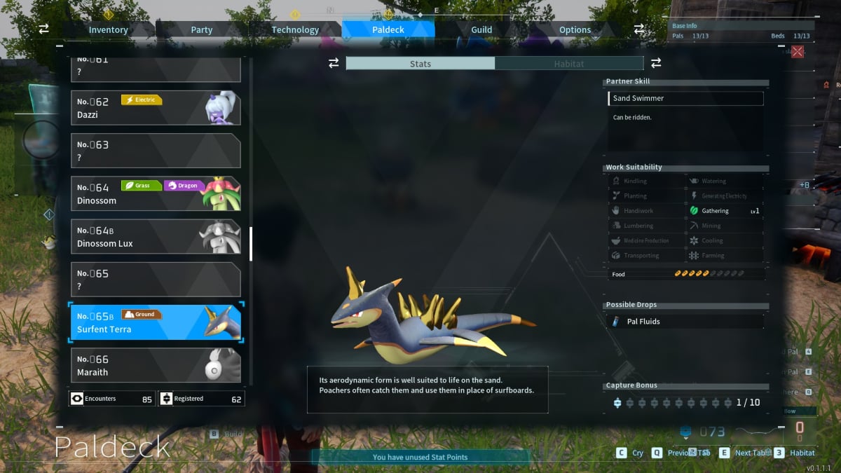 Surfent Terra is the only Fusion Pal on this list, and earns its place due to its Sand Swimmer ability. This mountable monster is capable of swimming through the land, making it efficient at moving from place-to-place across the several land-focused islands of Palworld.