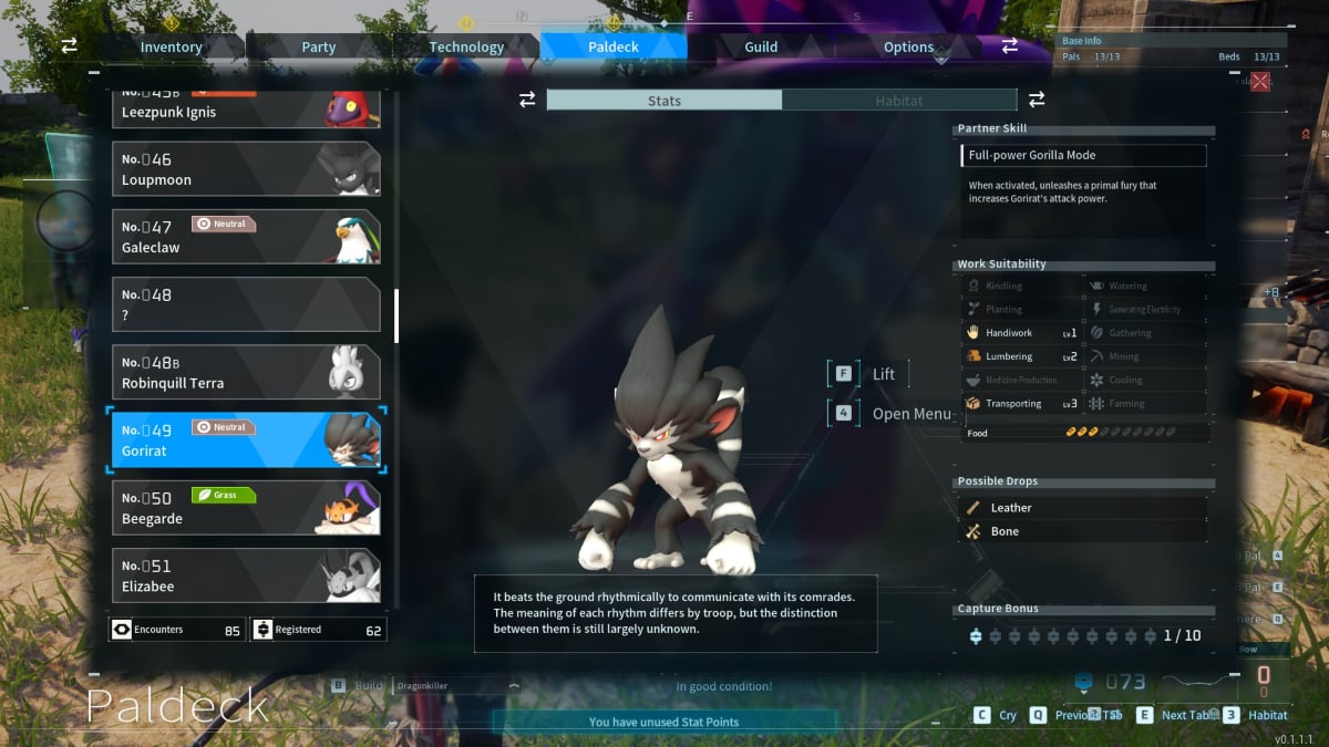 Gorirat can be considered one of the best combat Pals from the Neutral types, and might even be considered one of the best among all Pals. The reason why is its Partner Skill: Full-power Gorilla Mode. In this mode, Gorirat gets an increase to its attack power, and it can avoid opposing enemy attacks by leaping around before immobilizing them with a Donkey Kong-esque slam.